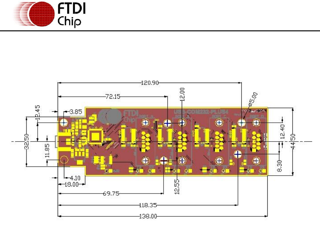 Figure 5.1 - USB-COM232-PLUS4 PCB Dimensions